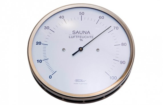 Nerūdijančio plieno drėgmėmatis, 130mm. Skirtas matuoti santykinę oro drėgmę pirtyje. Drėgmėmatis su sintetiniu siūleliu.