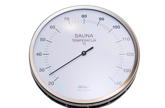 Nerūdijančio plieno termometras, 130mm. Skirtas matuoti oro temperatūrą pirtyje.