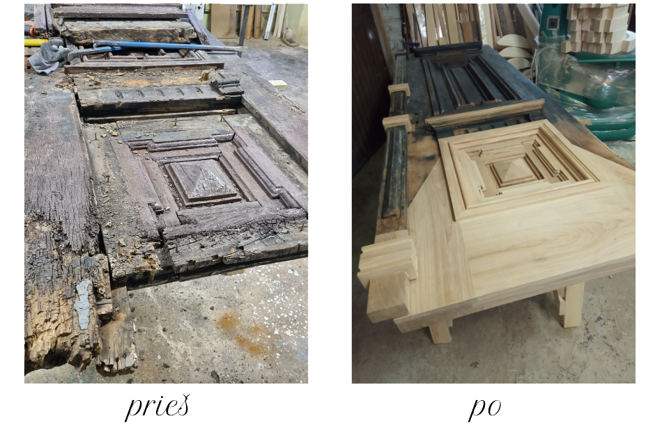 Restauruojame medinius pastatų elementus: duris, langus, langines ir kitas pastatų dalis. Dirbame su nekilnojamojo kultūros paveldo objektais ir individualiais klientais. Galime įgyvendinti įvairios medienos ir jos gaminių atkūrimą, išlaikant pirminę konstrukciją ir elementus.